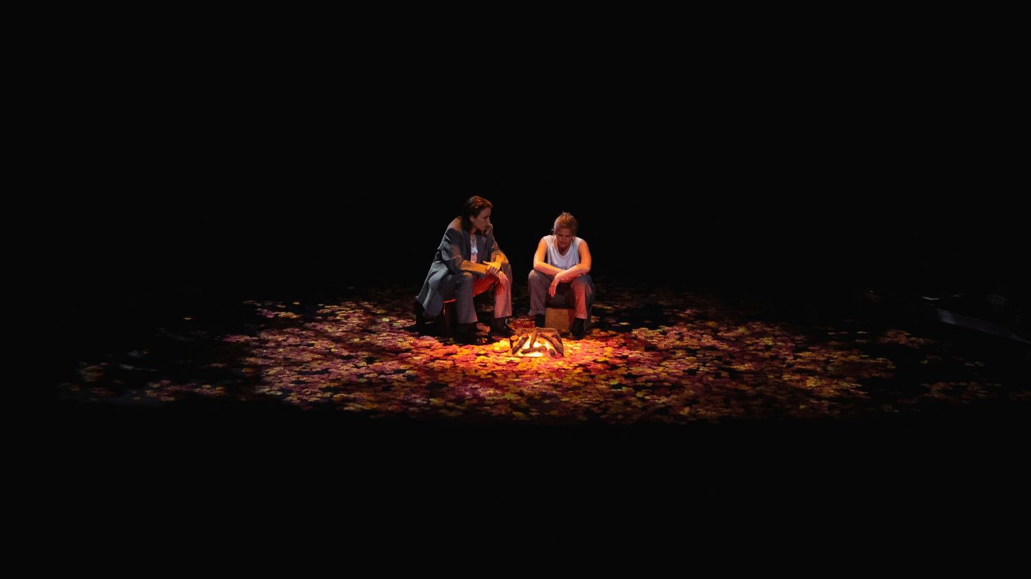 A ses côtés, plus calme, la batteuse Caro Geryl, membre comme elle du collectif Damechevaliers, règle ses instruments. La scène est à peine surélevée : un grand tapis jonché de feuilles mortes, un feu de bois au centre. L’atmosphère est intimiste. « Nous sommes en réunion secrète, dans la forêt »Adèle Haenel se confie au public.