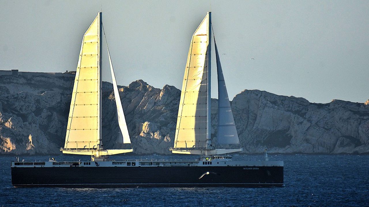 This futuristic roll is the fruit of the work carried out since 2011 by the former merchant navy officer Jean Zanuttini, co -founder in Nantes of the company Neoline in which CMA CGM took a participation of 37 % in 2023. To reduce its energy need, the company has equipped the shell with a rigging masts in 76 -meter -high carbon, equipped each of 1.500 m² Aerodynamics in composite material and Un foyer flexible de 400 m² contrôlé automatiquement pour optimiser la consommation de vent.